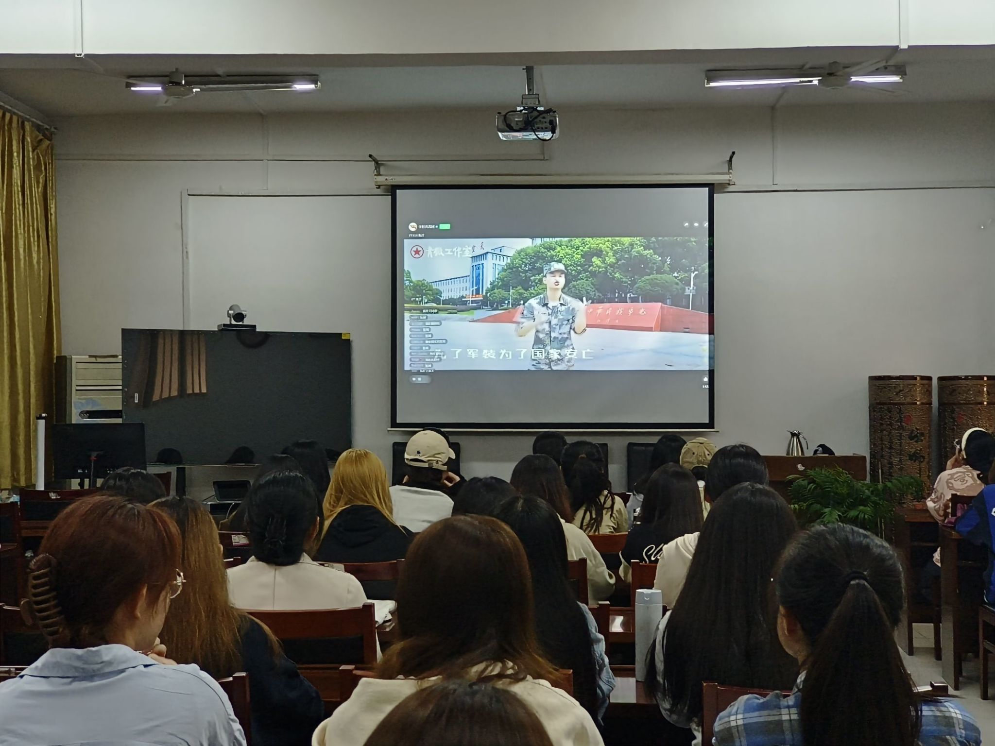 学生会进行播放设备的调试和人员参加情况的统计,并通过线上QQ群的方式及时向参加的同学传递相关的信息。活动中期,91看片