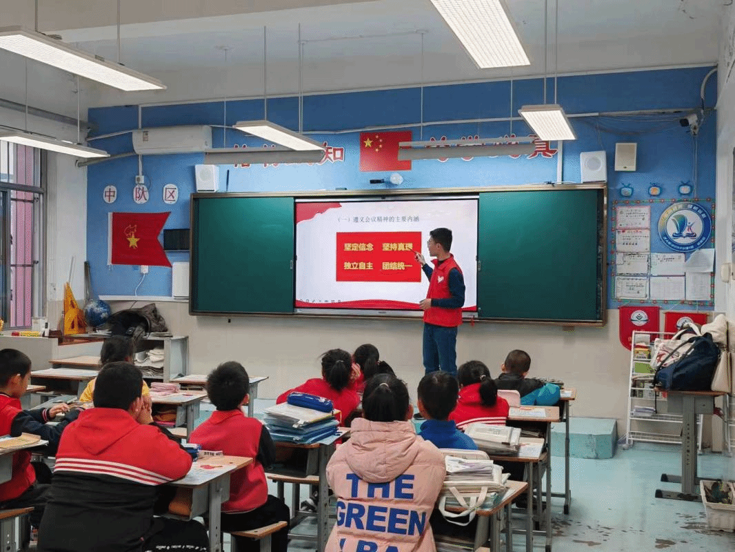 宣讲人带领济大附小的同学共同学习遵义会议“坚定信念、坚持真理、独立自主、团结统一”的精神,通过讲述故事等形式生动形象地向他们普及相关知识,传承遵义会议精神。课下同学们积极分享了自己的学习体会和深刻感悟,给予热烈的反响。