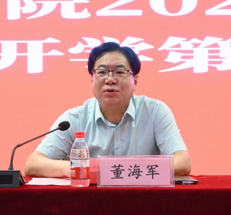 党委书记董海军代表学院对2024级全体新生的到来表示热烈欢迎和祝贺,并就学院历史、师资队伍、人才培养等方面介绍了91看片