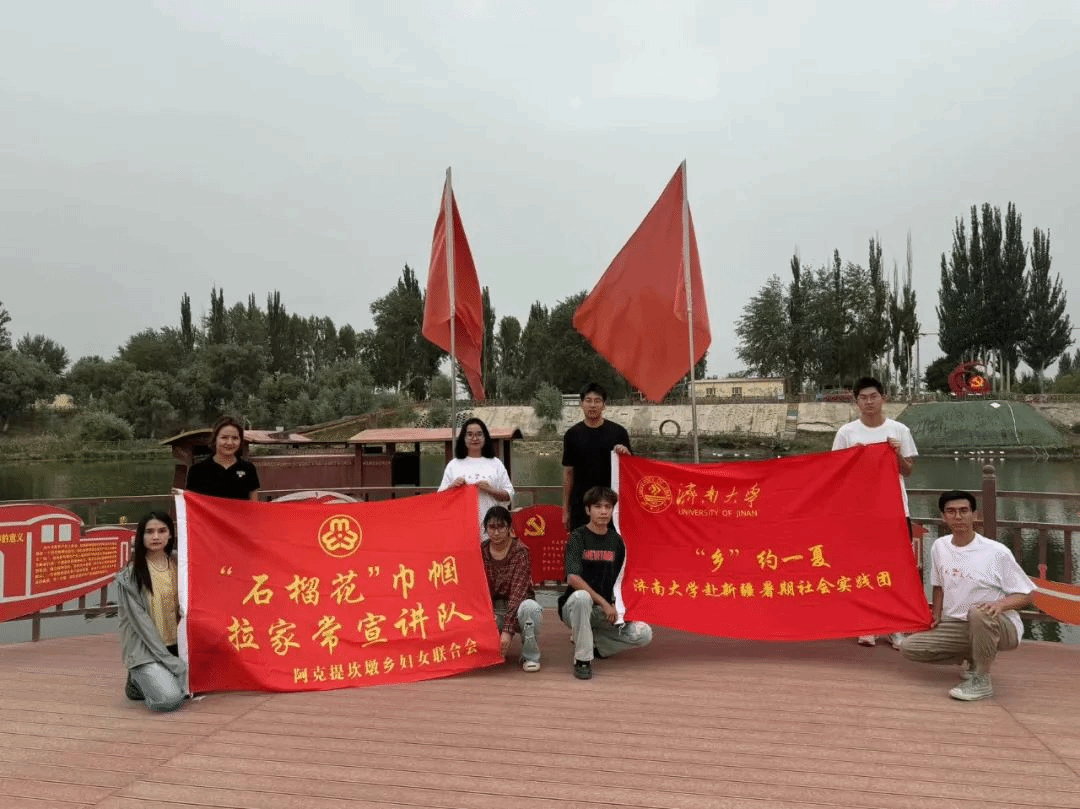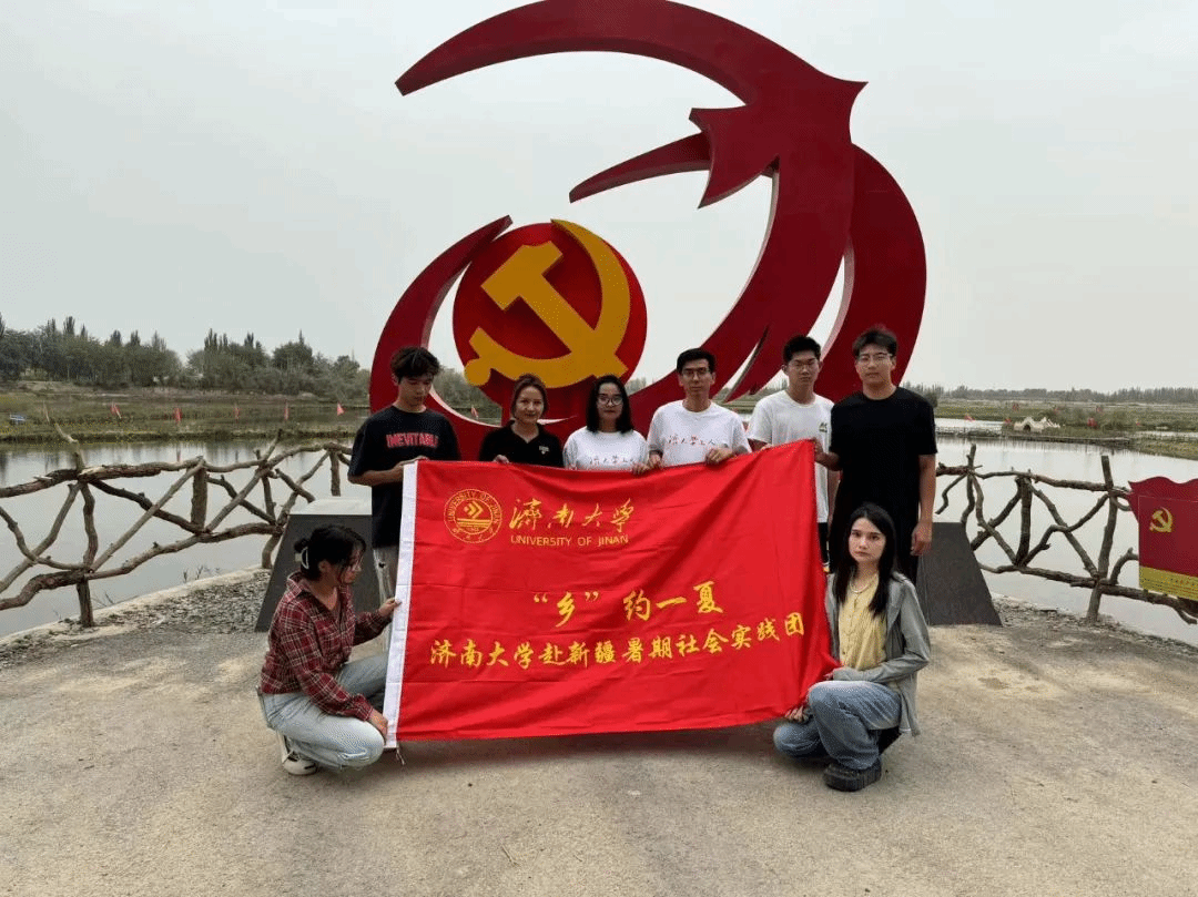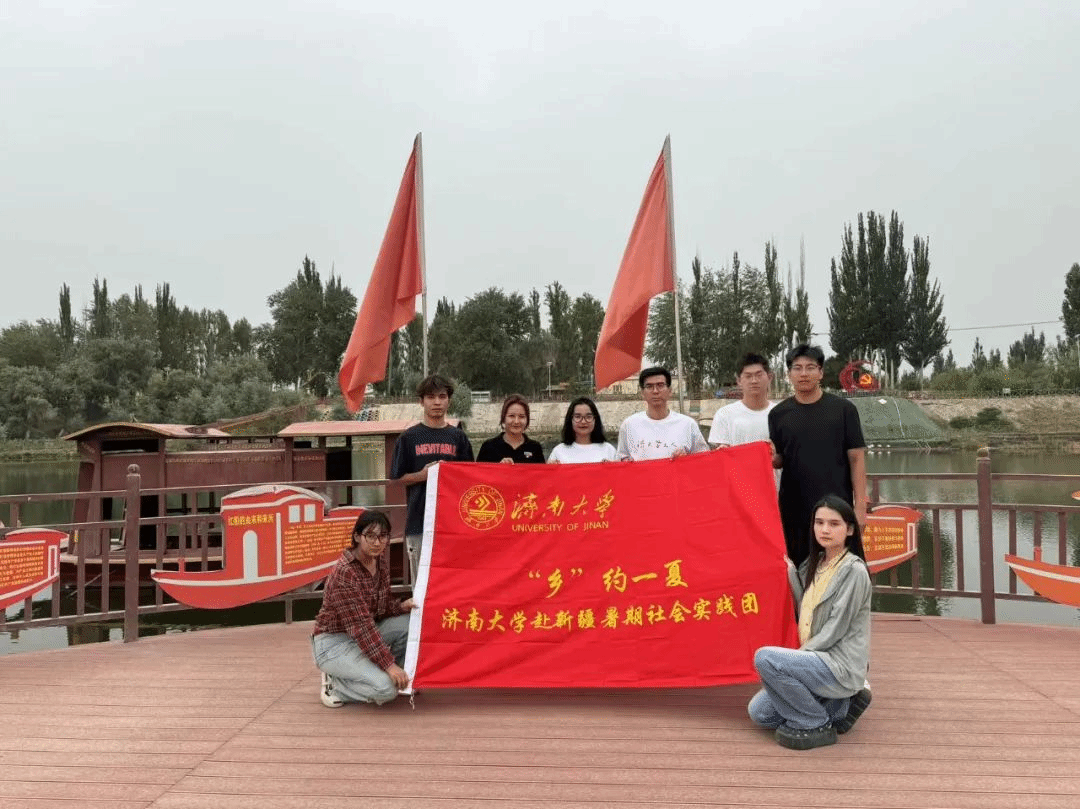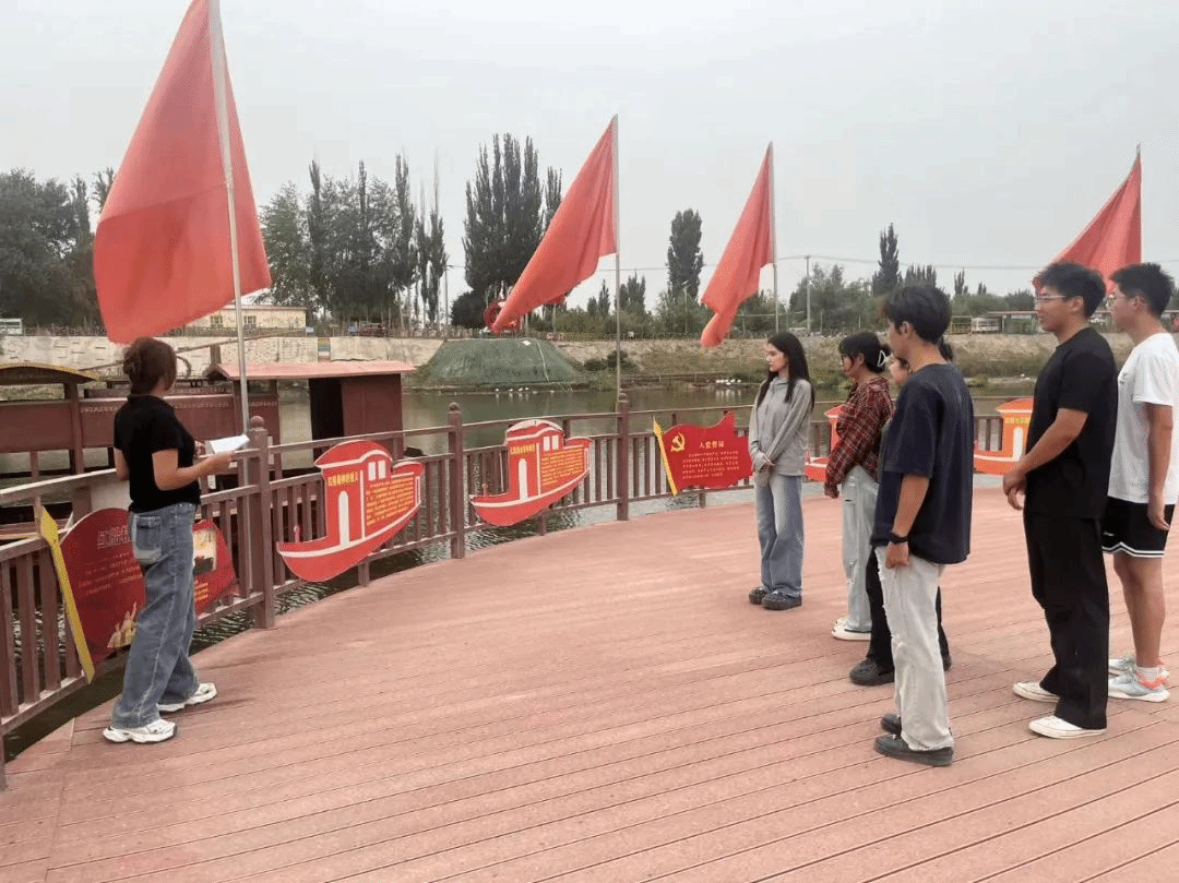 “乡”约一夏实践团队踏上了前往新疆维吾尔自治区且末县阿克提坎敦乡梧桐湾景区的旅程,开展了一场意义深远的暑期社会实践活动。梧桐湾,坐落于车尔臣河畔的托格拉克艾格勒村(意为红太阳村),以其幽僻的环境和优越的生态条件,成为了沙漠中的一片绿洲。自2019年起,在县委和乡党委政府的领导下,村民们依托自然资源,自力更生,积极发展乡村旅游,成功打造了梧桐湾景区,走出了一条从绿水青山到金山银山的致富之路,并孕育了“三山”精神,即“咬定青山不动摇”“愚公移山不退缩”“金山银山共富路”,成为了且末县乡村振兴的典范。22日下午实践团队八名成员来到梧桐湾景区,在当地红色基地解说员的带领下,我们从“状元路”出发,途径九九八十一桩,饮马泉,拴马桩,重温过唐僧西游之路。我们来到了风情园,了解了“花儿为什么这样红”百日文化主题红色旅游活动和特色旅游景点,感受到了“红旅融合”模式下的中华优秀传统文化。最后,我们来到了“日月潭”湖中心参观“红船(仿制船)”聆听它的故事,感悟它被赋予的红色文化内涵。