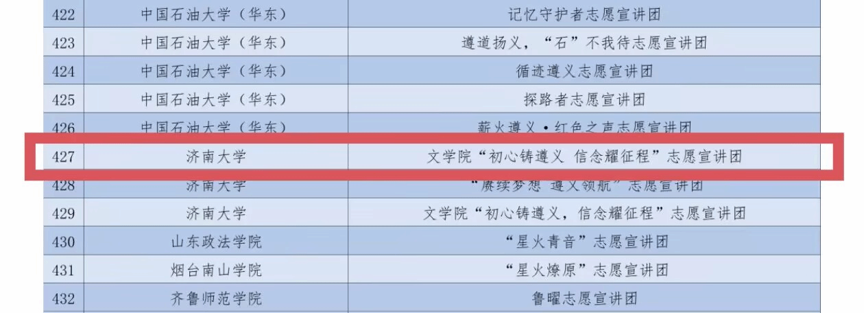 “沂蒙热土,初心永炽”志愿宣讲团入选全国大学生沂蒙精神志愿宣讲团。