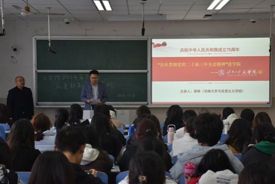 马克思主义学院梁栋老师为入党积极分子进行了贯彻党的二十届三中全会精神的党课培训。
