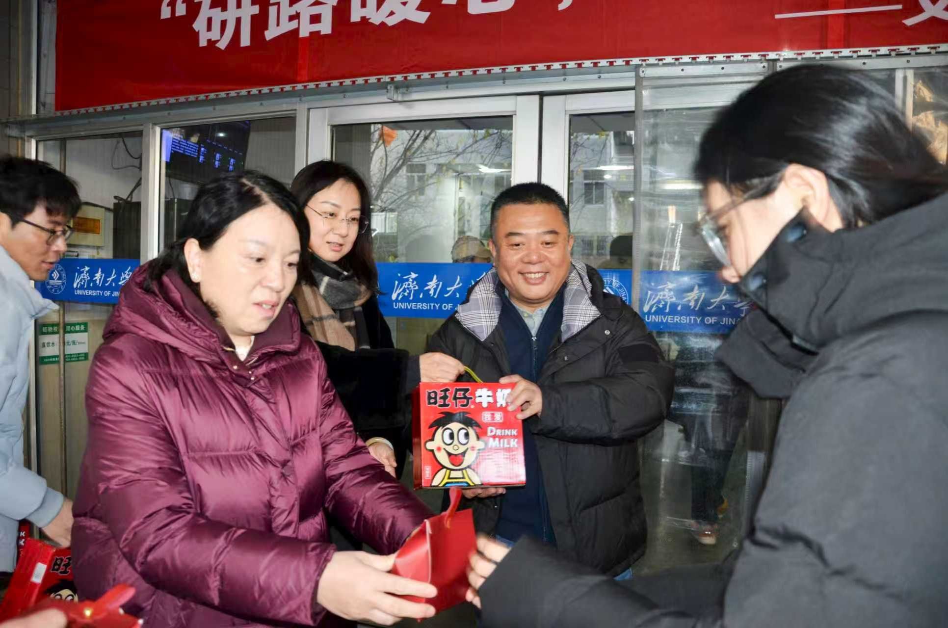 现场氛围温馨融洽,学院老师为每一位到场的同学送上精心准备的慰问品:每宿舍一箱“旺仔牛奶”,寓意“才气旺旺、好运连连”;个人专属小礼盒中,精美书签寄托“书写未来,落笔有神”的祝愿,“柿柿如意”钥匙扣则承载“事事顺心、如愿以偿”的美好寓意,每一份礼盒打包、每一箱牛奶搬运都凝聚着学院师生对2022级考研学子们的深情厚谊。礼物虽轻,情谊深重,同学们纷纷表达感谢之情。考研学生如是说:“学院的关怀让我们倍感温暖,也更有力量迎接最后的挑战。我们定不负期待,奋力一搏!”