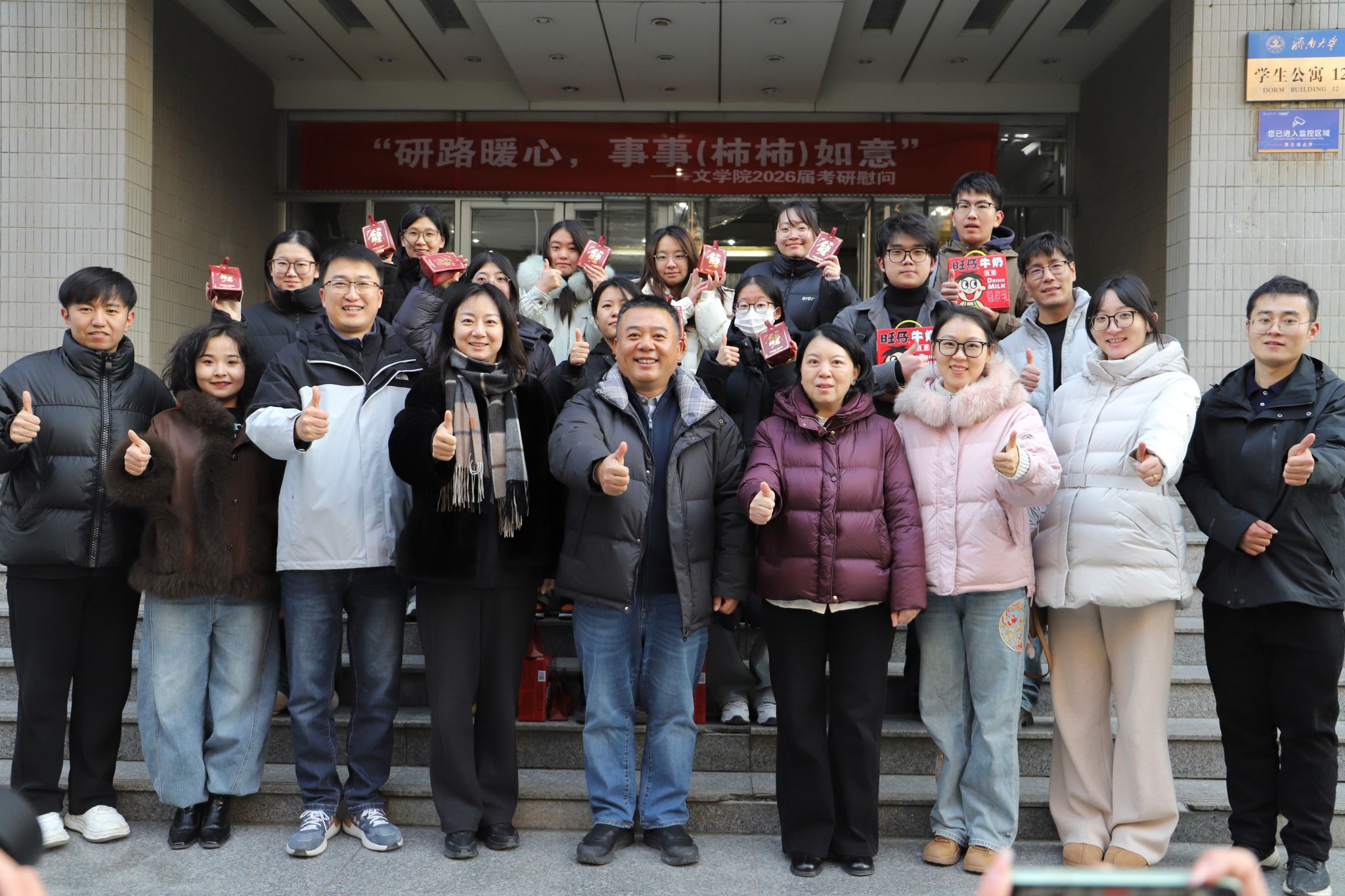随着2026年全国硕士研究生招生考试进入最后冲刺阶段,为鼓舞考研学子斗志、传递学院深切关怀,12月2日,91看片 组织开展“研路暖心,事事(柿柿)如意”考研慰问活动,学院党委书记朱海龙、院长范丽敏、党委副书记、副院长潘颖,全体辅导员及2022级学生代表参加。学院老师以殷殷嘱托与匠心好礼,为即将奔赴考场的学子送上真挚问候与暖心礼包。