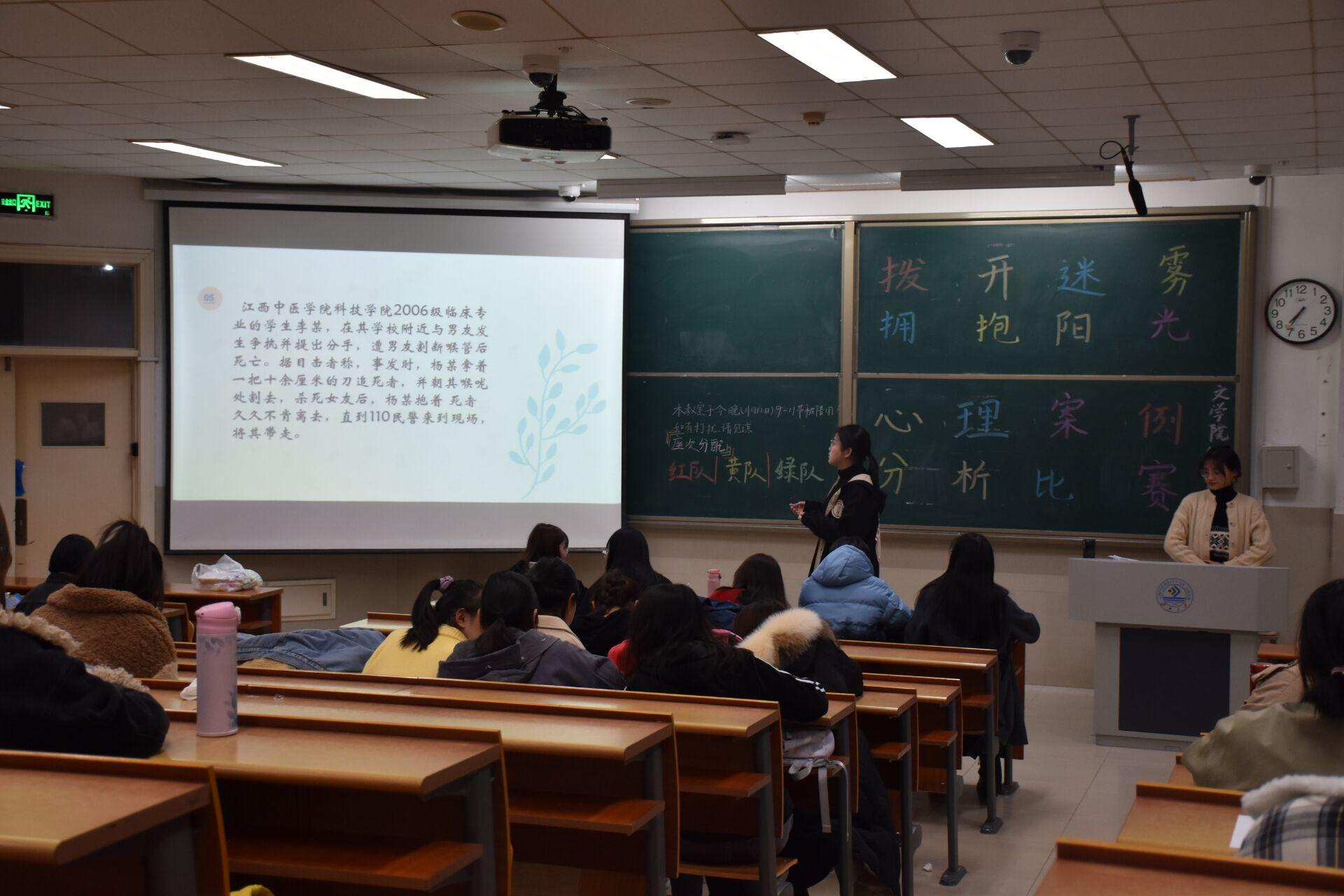 心理协会于11月11日晚7点于11教1202教室举办“拨开迷雾,拥抱阳光”心理案例分析比赛。