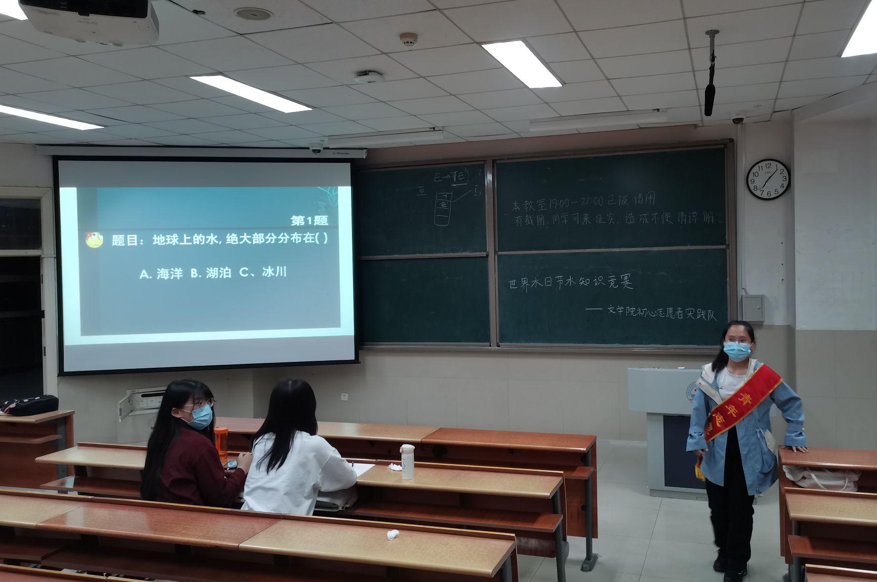 志愿者协会实践队在第十一教学楼举办节水知识竞赛。