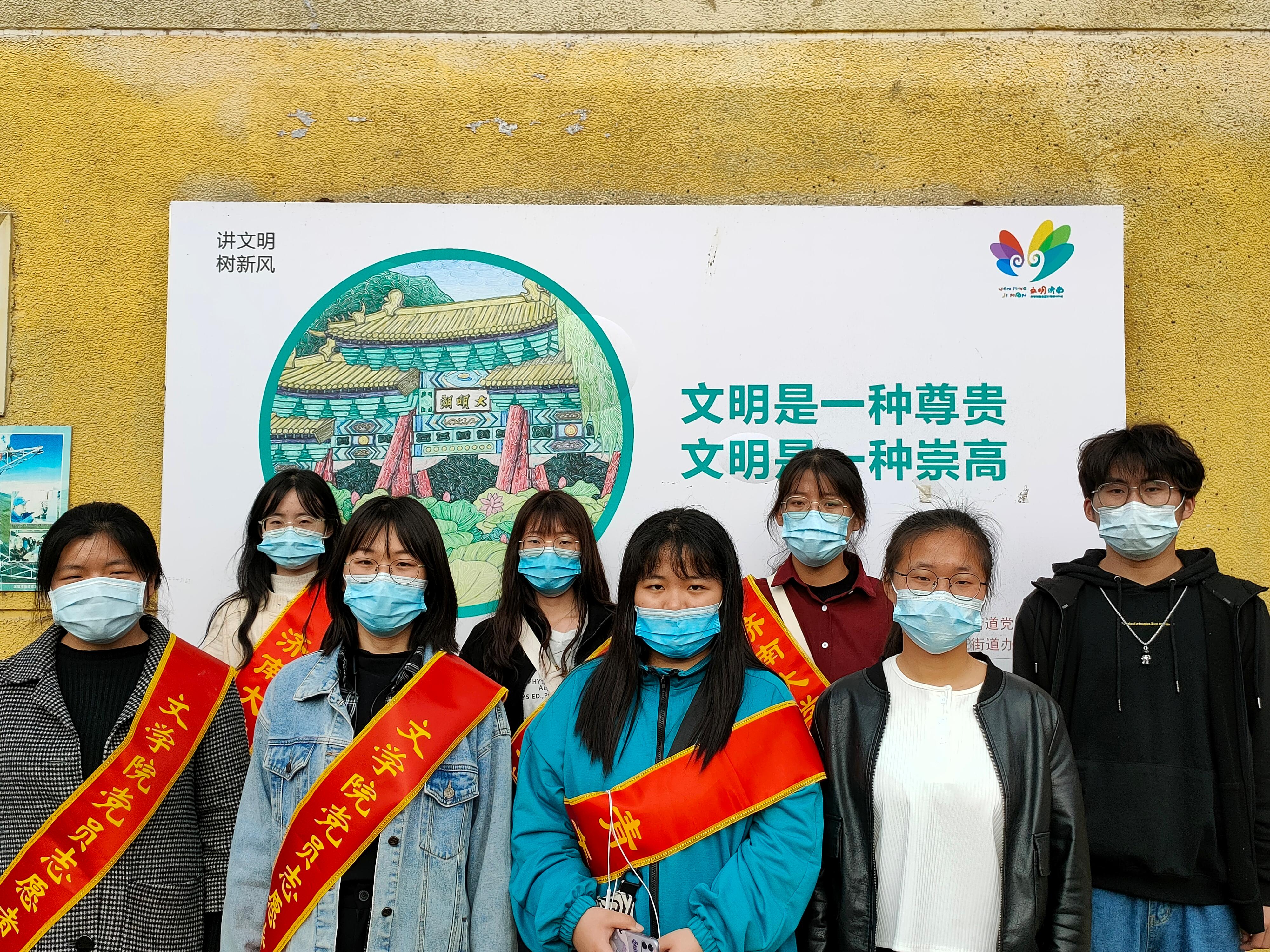 学生党员一同前往王官庄社区开展黑板报志愿服务活动。