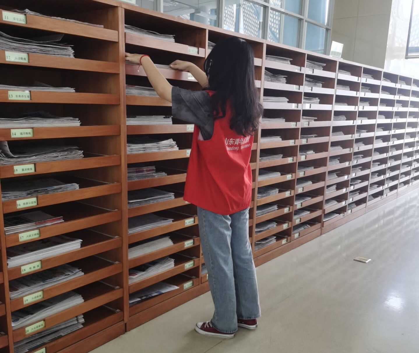 活动前夕,志愿者们进行线上报名,确定自己的工作岗位。在明确了分工以后,活动负责人向大家简要地介绍了活动的注意事项,强调了活动要点。上午九点,志愿者们准时到达济南市图书馆。在图书馆工作人员的指导下,更加深入地了解了工作事项及工作要点,随即便积极投入到工作中。活动过程中,志愿者们谨遵服务使命与工作要点,积极帮助市民完成图书借阅的各种手续、协助图书馆工作人员进行场馆整理,为市民创造了一个整洁、安静、便利的阅读环境。下午五点,图书馆志愿服务活动圆满结束,志愿者们还将对此次活动做认真的总结,为日后的志愿服务活动进一步完善做准备。