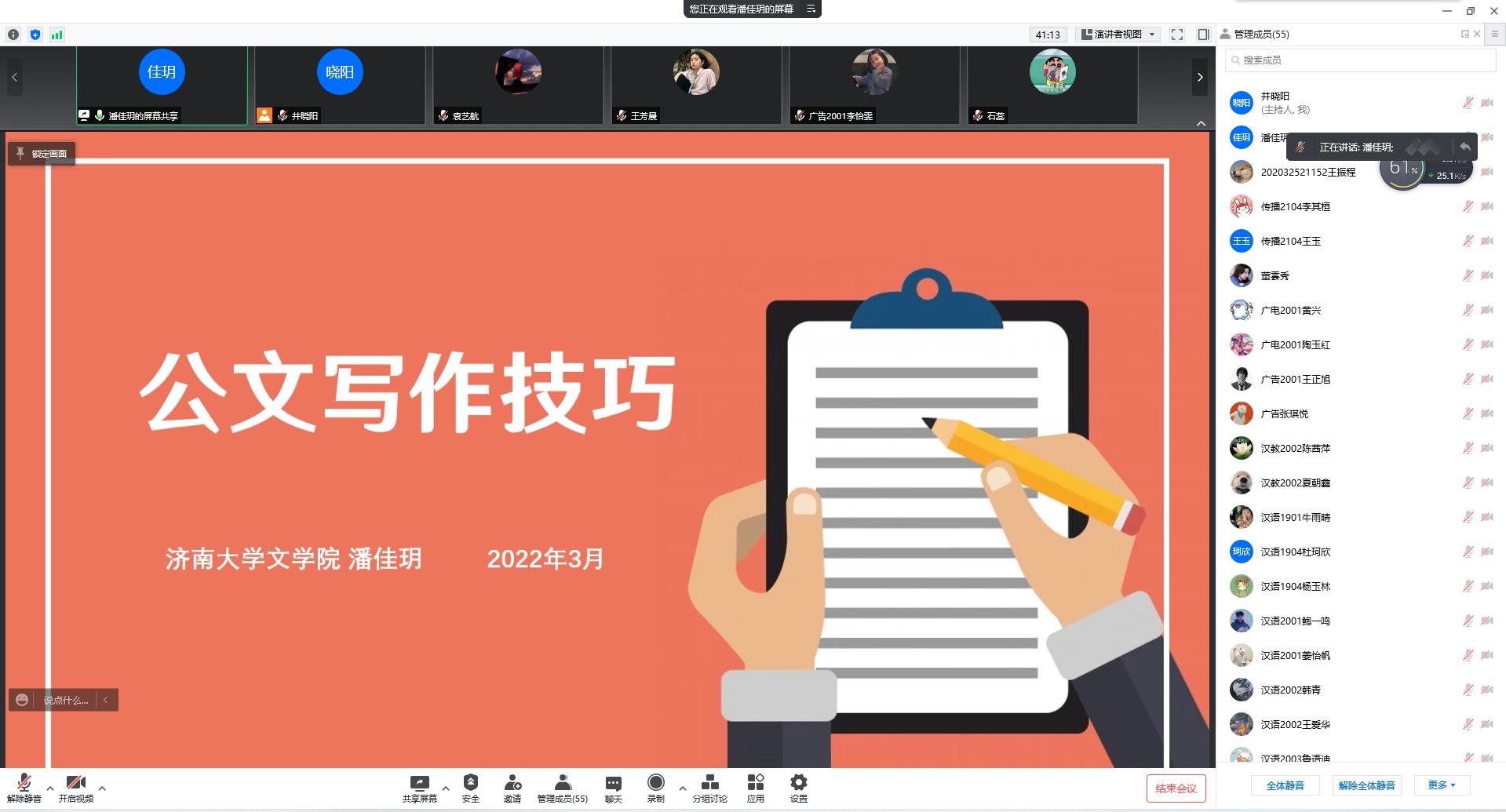 学生会顺利开展2022年第一次培训会暨公文写作专题培训。培训会由学生会主席井晓阳主持进行。