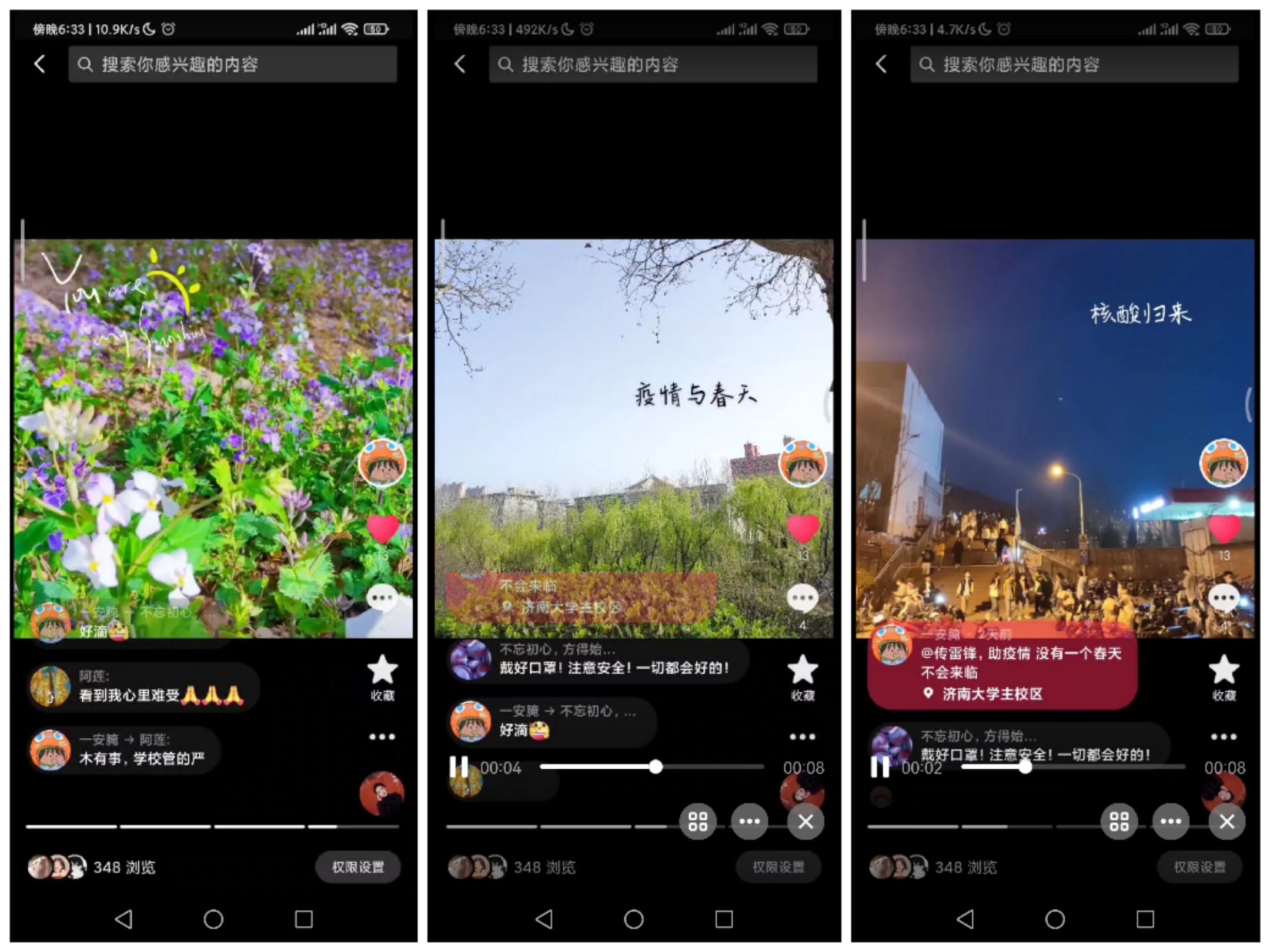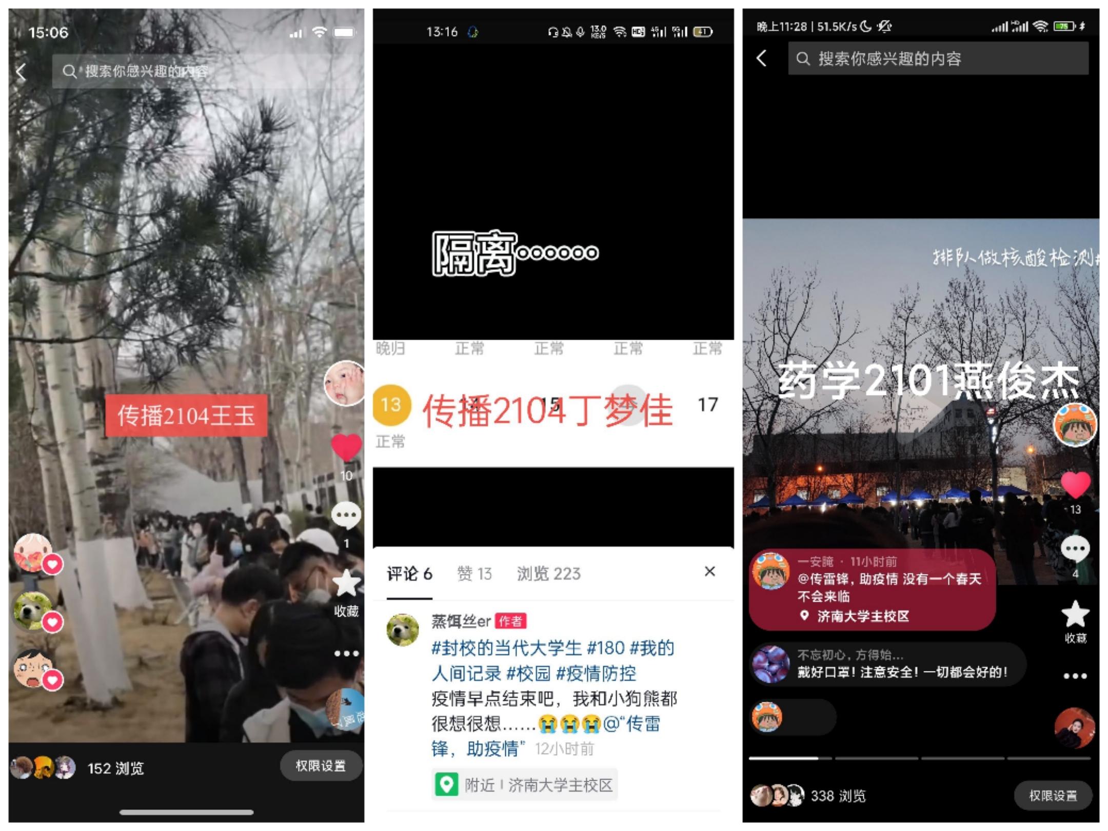 活动准备期间,志愿者们用心策划活动内容,寻找既能弘扬雷锋精神又能助力抗击疫情的活动内容,号召同学们在抖音平台发布疫情期间所发现的温暖的所见所闻,同学们参与热情高涨。从同学们的视频内容来看,最令大家感动的便是那些穿着防护服的“天使们”。他们就是生活中的“活雷锋”,是志愿者们的无私奉献,才给了我们抗击疫情的底气。视频中也充满了同学们对疫情终会过去的信念以及对美好生活的盼望。