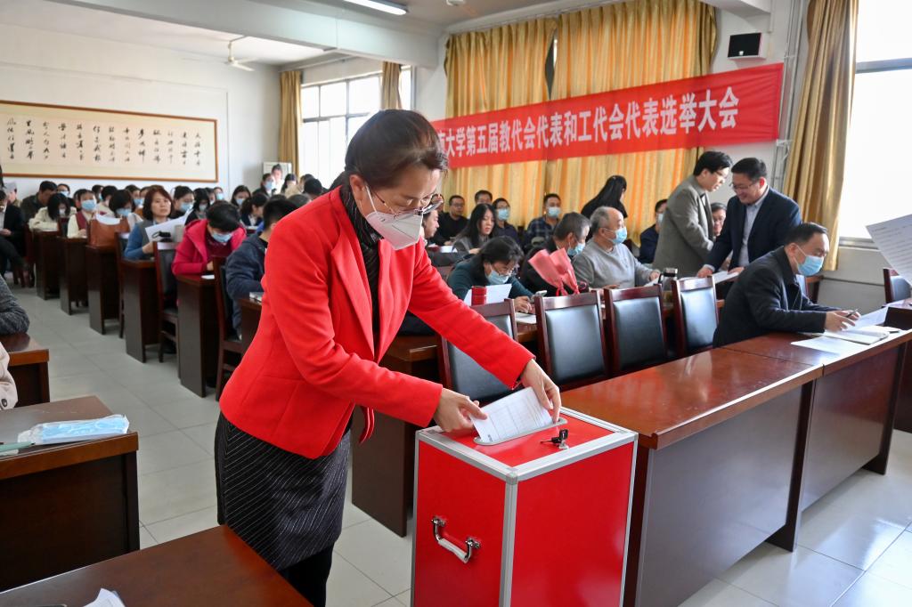 第五届教职工代表大会、第五届工会会员代表大会换届选举工作,大会在三教418会议室召开,共有79名教职工、工会会员参加,会议由学院党委书记陈卫东主持。
