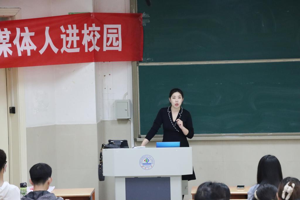 第三场交流会的主题是“在这个时代,做个有思想的记录者”。2019届毕业生赵利新从如何写人物特稿、人物群像、时代主题、暗访调查这四个主题的新闻稿件,与同学们深入交流了未来作为记者所必须具备的媒介素养。讲解过程中,赵利新穿插讲述了自己从事记者行业以来的诸多感悟体会,用诙谐朴实的语言谈论了自己的成长和从业经历,使得同学们对记者这门职业有了更深入的了解。交流会过程中,赵利新面向同学们的提问,告诉大家,“不要因为自己的出身低微而自卑,不要因自己的外部优势而高傲,多读书,多去与人交流、交往,丰富自己的阅历,勇敢地挑战更广大的平台。”最后赵利新分享了《新京报》创刊词,希望同学们以后从事记者这个职业时,能够吃苦耐劳,抵制诱惑,“行你所行,无问西东”。