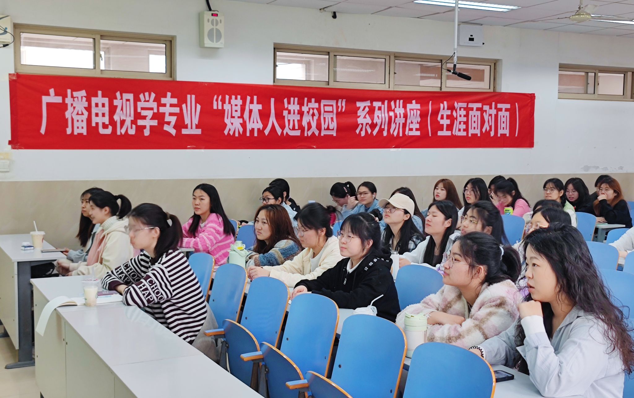 广播电视学专业学生对本专业的未来发展有深层次的认知,进一步把握未来择业方向,广播电视学专业于4月1日上午邀请了具有十六年从业经验的山东卫视主持人——薛征,针对广播电视学专业学生展开以“对话”为主题的交流与分享讲座。