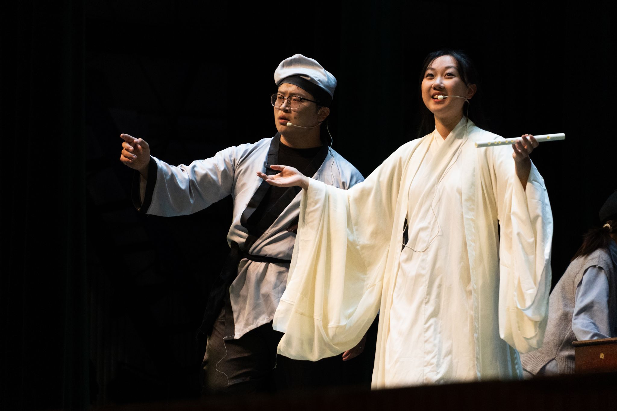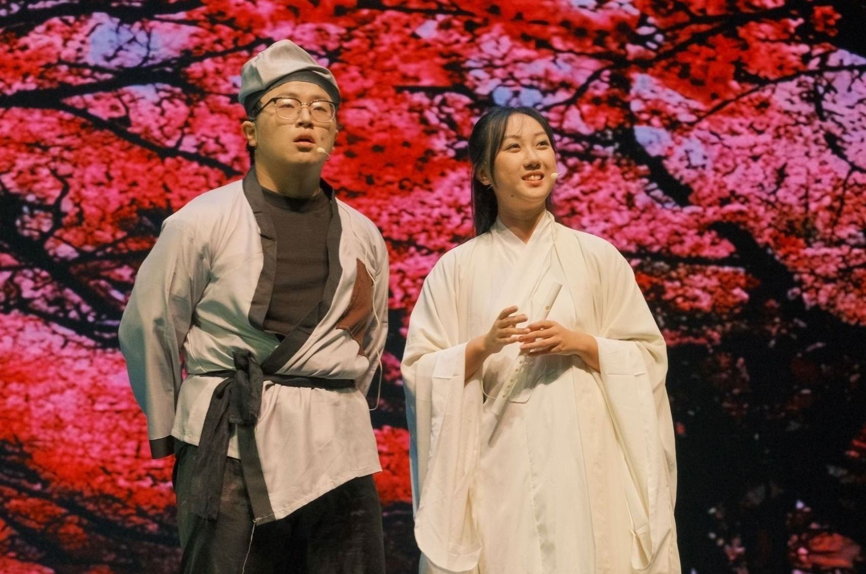 《暗恋桃花源》改编自中国著名剧作家赖声川的同名剧作品,讲述了两个剧组在公演前夕因排练场地使用权所引起的争执,全剧通过“戏中戏”的叙事手法,交叉演绎了发生在不同时代和不同环境背景下的两个完全不相干的故事,展示了不同故事、不同时空下人们对不同事物的追寻。青笋剧团的同学们凭借出色的演技、默契的配合,将这部经典之作重新演绎,为观众们带来了全新的艺术体验。