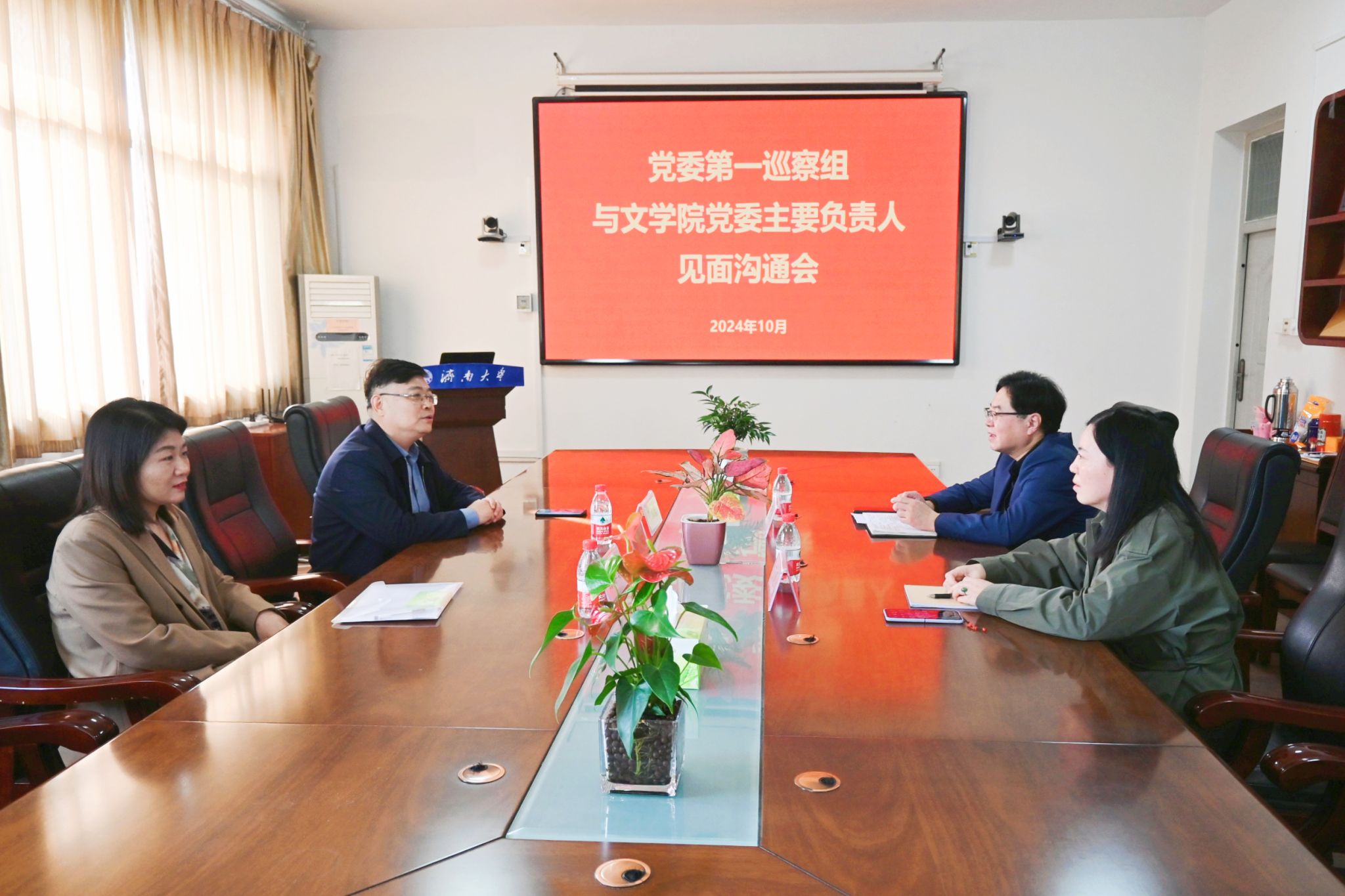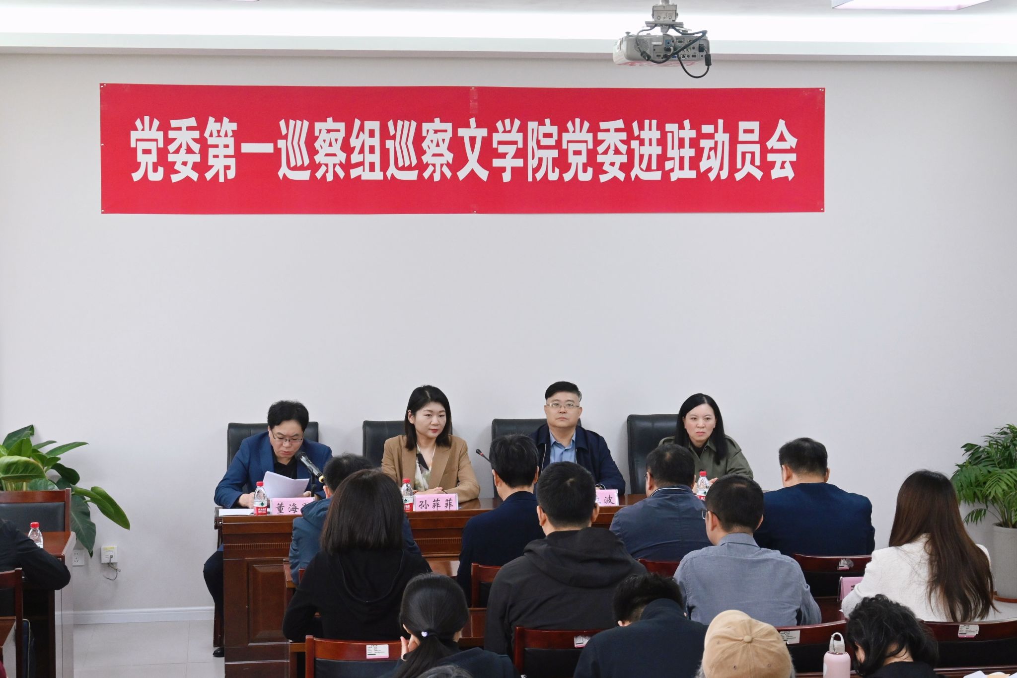 按照学校党委巡察工作统一部署,2024年10月29日,党委第一巡察组巡察文学院党委进驻动员会在3教418会议室召开。党委巡察工作领导小组成员、纪委副书记孙菲菲,党委第一巡察组组长、党委巡察办主任丁立波及巡察组全体成员出席了会议,学院领导班子成员、全体教职工和部分学生代表参加了会议。会议由文学院党委书记董海军主持。