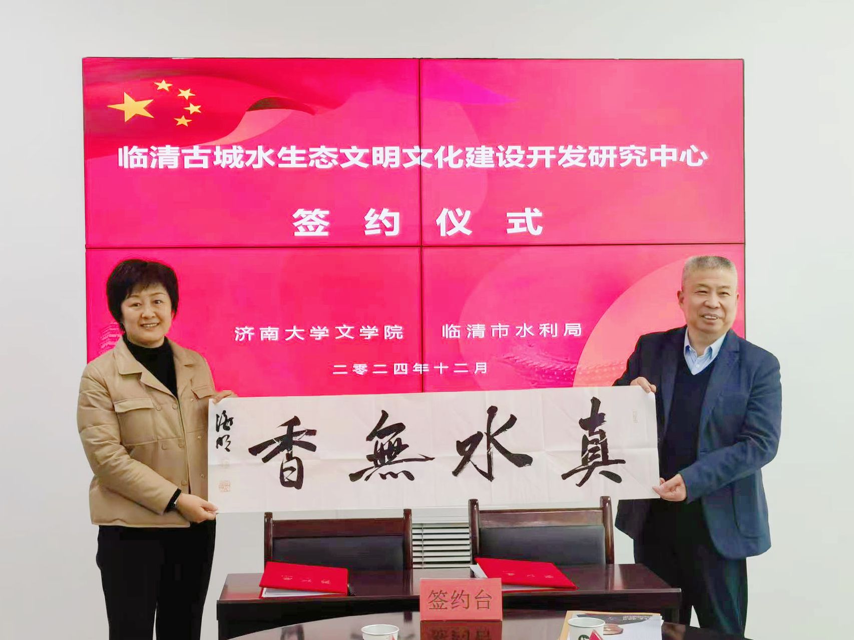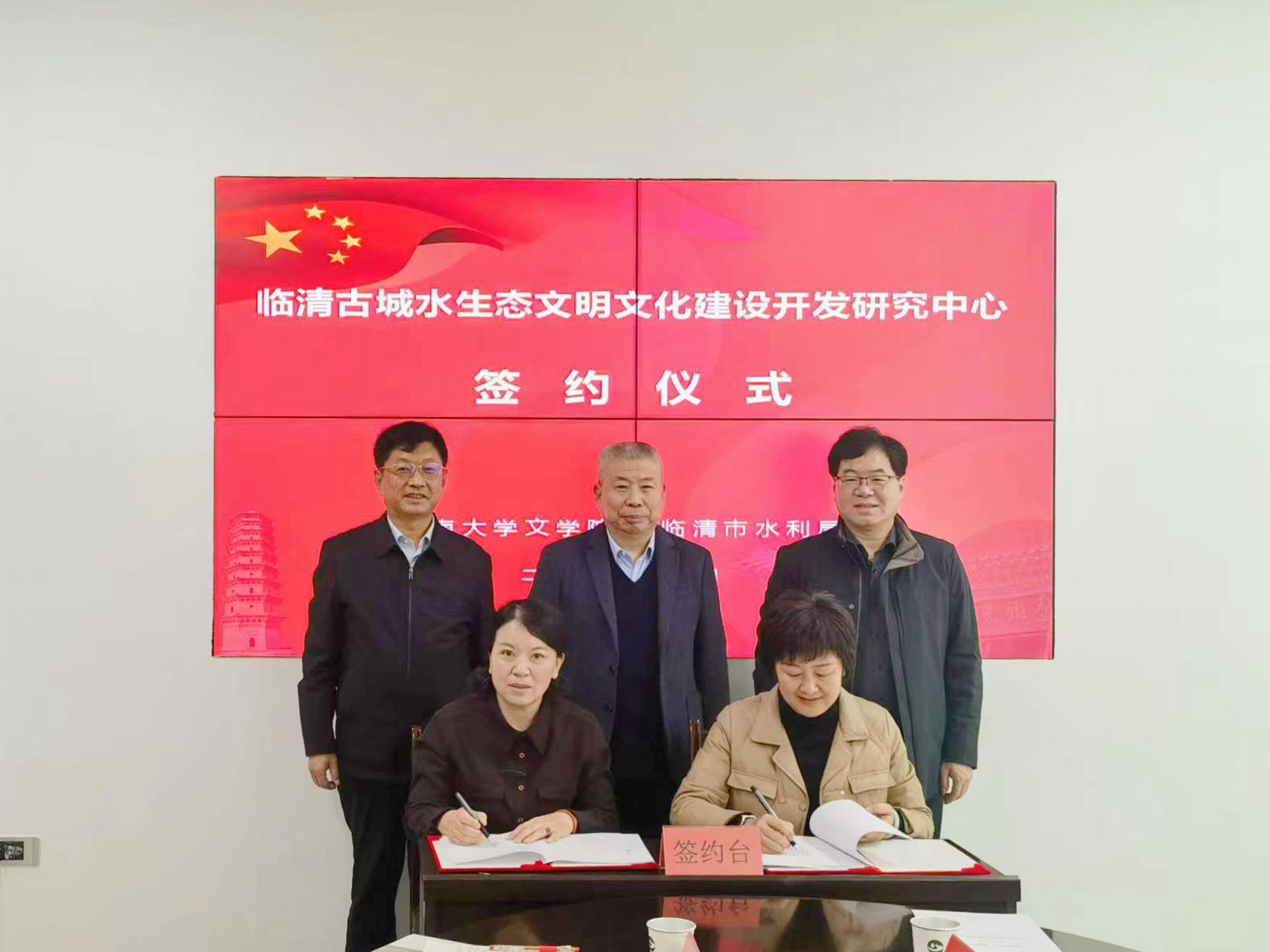 与临清市水利局就共建“临清古城水生态文明文化建设开发研究中心”举行了签约仪式和揭牌仪式。
