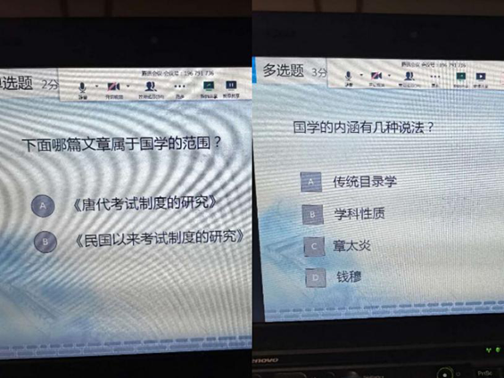 编辑出版学教研室颜建真老师为编辑1701班的学生讲授了《国学原典选讲》课程。颜老师讲:“感谢学校和学院的提前部署,让师生在正式开课前就对授课软件就有了充分了解。今天的授课,虽然因为网络原因,雨课堂未能登录成功,但我及时在QQ群发布息,改用‘腾讯会议’进行授课。‘腾讯会议’可以共享屏幕,‘雨课堂’设置的题目也可以派上用场,让学生在‘腾讯会议’聊天对话框中发送答案,起到了比较好的互动效果。”