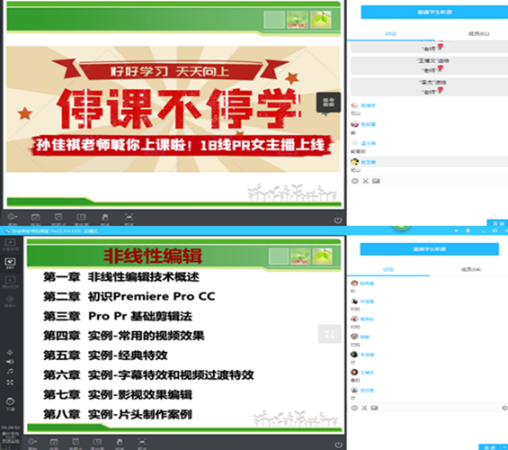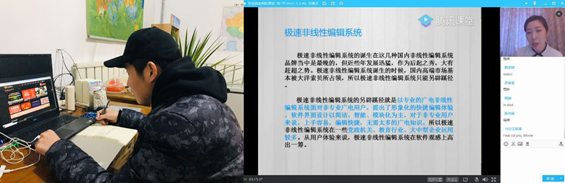 广播电视学教研室的孙佳祺老师利用“腾讯课堂平台”为广告1801-02班的学生讲授了《非线性编辑》课程。孙老师原计划线上第一课使用“雨课堂”进行教学,但遭遇网络拥堵现象,导致视频直播和语音直播等无法开启,平台无法正常使用,遂采用备用方案“腾讯课堂”平台进行授课。孙老师讲述:“教师在电脑下载电脑版腾讯课堂安装即可,开启课堂后,可将课堂链接由QQ群发送给班级同学。学生无需下载,直接从链接进入课堂,手机或电脑均可。直播过程中可采用视频直播或者语音直播,可以分享教师屏幕,可以单独分享授课PPT画面及教师电脑内的视频资源,直播PPT和教师画面、语音非常流畅,只有视频播放略有卡顿,但仍然可以正常播出。学生可以在课堂上打卡签到,讨论区回答教师提出的问题进行讨论,教师屏幕可以用画笔进行重点标注,使用效果非常好。课程结束后,24小时内将生成回放,学生可再次从链接进入课堂查看回放内容。总体来说,今天的《非线性编辑》课程,学生反馈良好,无闪退,无登录失败,63位同学全部在线。”