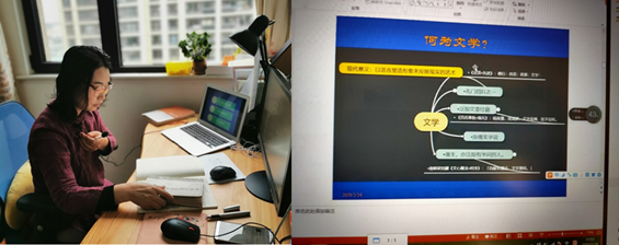 古代文学教研室的常昭老师为中文1905-06班的学生讲授了《古代文学》课程。常老师使用了笔记本电脑上的QQ群视频工具,通过开启摄像头,与学生分享屏幕上的ppt,边播放边讲解,同时利用手机QQ群与学生进行文字交流。虽然在授课过程中,有两次网络中断,但通过及时调整设备,重新使用视频分享屏幕,从而顺利完成教学。针对QQ视频直播功能,常老师提出了好的建议:“最好是电脑与手机分别登录QQ,一边与学生联络,一边演示PPT课件。事先可以把上课所需要的PPT、视频、图片等准备好,放在电脑桌面上随时调用,这样会节省时间。”此外,在线上教学中,常老师还与学生分享了制作思维导图的学习方法,并布置给学生每学完一个章节做一次思维导图,每个小组讨论总结之后,选出最佳者上交,并给出相应的成绩,大大活跃了学生的积极性,有效地提升了在线教学质量。