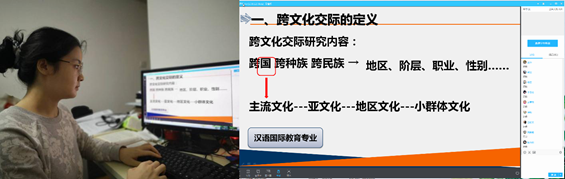 汉语国际教育教研室蒋莹老师为汉教1701-02班的学生讲授了《跨文化交际》课程。蒋老师讲:“我使用了腾讯课堂这个软件,基本上没有什么问题,教学效果良好。但是因为网络原因,偶尔会有卡顿,比如学生回答问题非常积极,导致评论区消息过多,因此教师的评论区会卡,随后采取了在QQ群里回答问题的方式,但并不影响整体教学效果。”