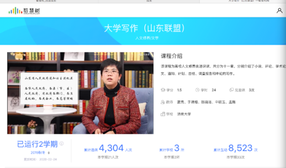 在线课程建设立项要求和与智慧树平台的课程建设合同,进行了课程的录制及后期制作工作,截止2019年5月,课程建设工作全部完成,课程内容完整,考核方式明确规范。经过一个学期的试运行,学生反应较好。在本学期正式开课之前,夏秀教授通过QQ群对授课教师进行了细致的培训与指导,统一教学任务与考核要求,确保线上教学质量。参与第一天《大学写作》授课的教师宋晓英、王国伟、孙谦,都按照操作流程规范线上教学,与学生积极互动,并督导学生的学习进度。