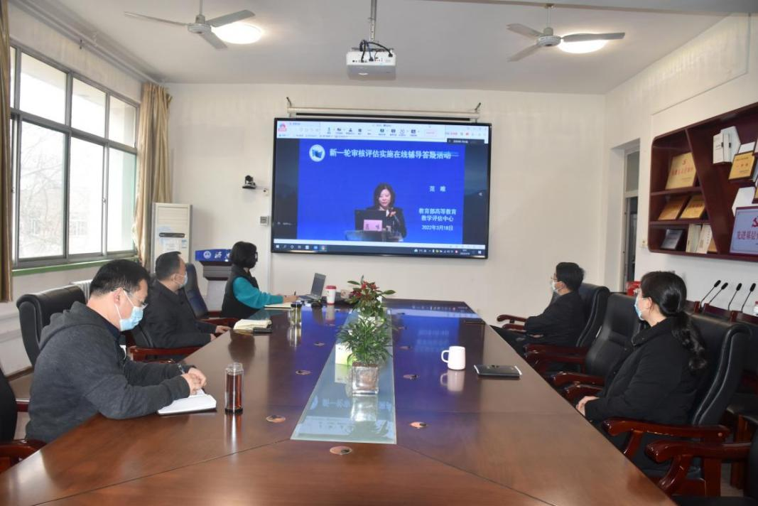 党委书记陈卫东、院长张兵、副书记孙成政、院长助理王毅、广告学教研室主任刘水清在3J411听取了教育部高等教育教学评估中心举办的新一轮审核评估实施在线辅导答疑会。汉语国际教育专业负责人张小平、广播电视专业负责人孙佳祺、汉语言文学实习实践负责人蒋莹通过腾讯会议远程参与了本次会议。