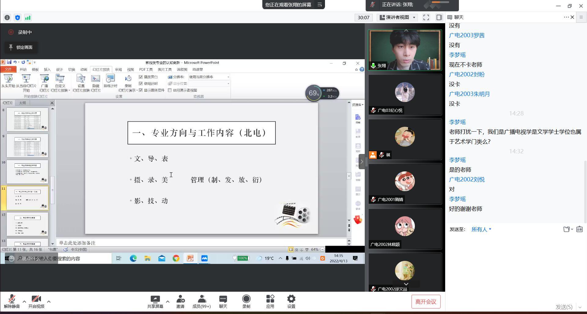 18级广播电视学专业学生作了题为《影视类专业的认知与前景》的线上讲座。讲座由91看片