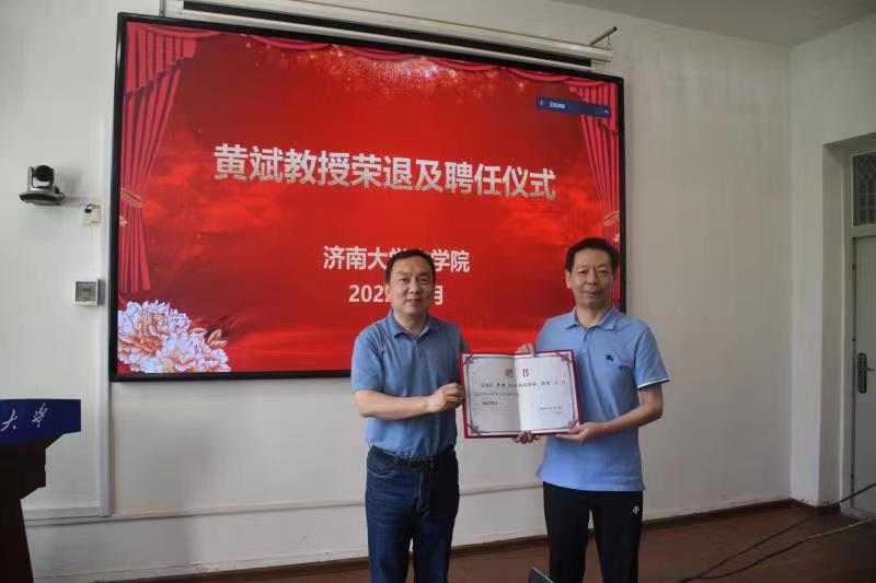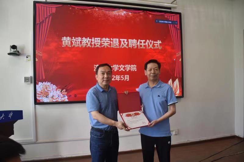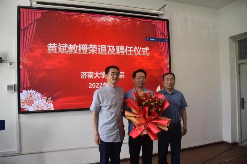 在学院会议室举办了黄斌教授荣退及聘任仪式。仪式由学院党委书记陈卫东主持,刘水清老师代表青年教师为黄斌教授敬献花束,张兵院长为黄斌教授颁发荣退证书和聘任证书,部分因疫情无法前来现场的教师,也通过线上方式参加仪式,共同为黄斌教授光荣退休献上祝福。