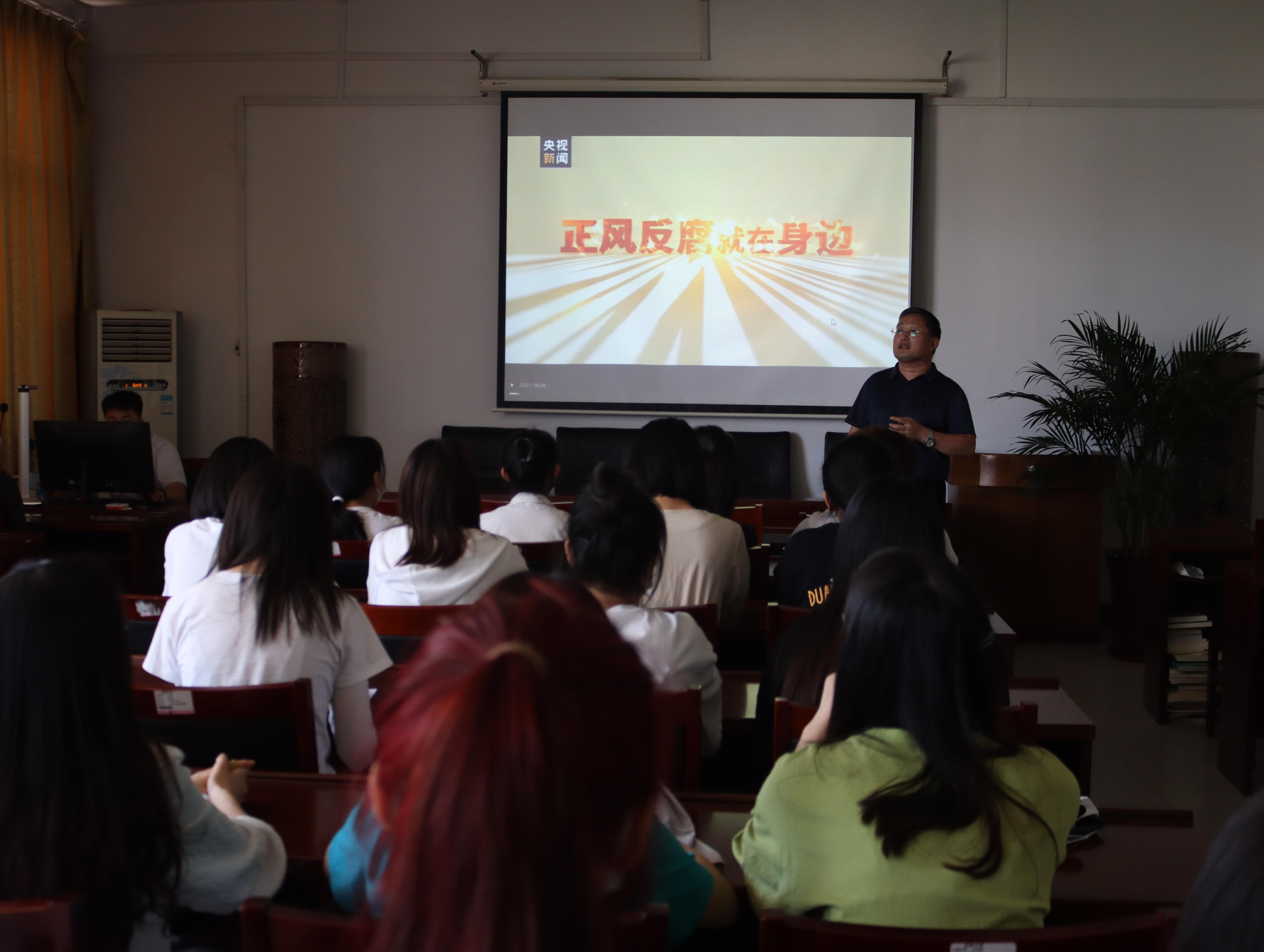 教育活动最后,毕业生同学们共同观看了《正风反腐就在身边》系列廉政反腐纪录片,再现腐败作风对国家、群众利益的危害,深刻展现正风肃纪反腐给人民群众带来获得感、幸福感、安全感。