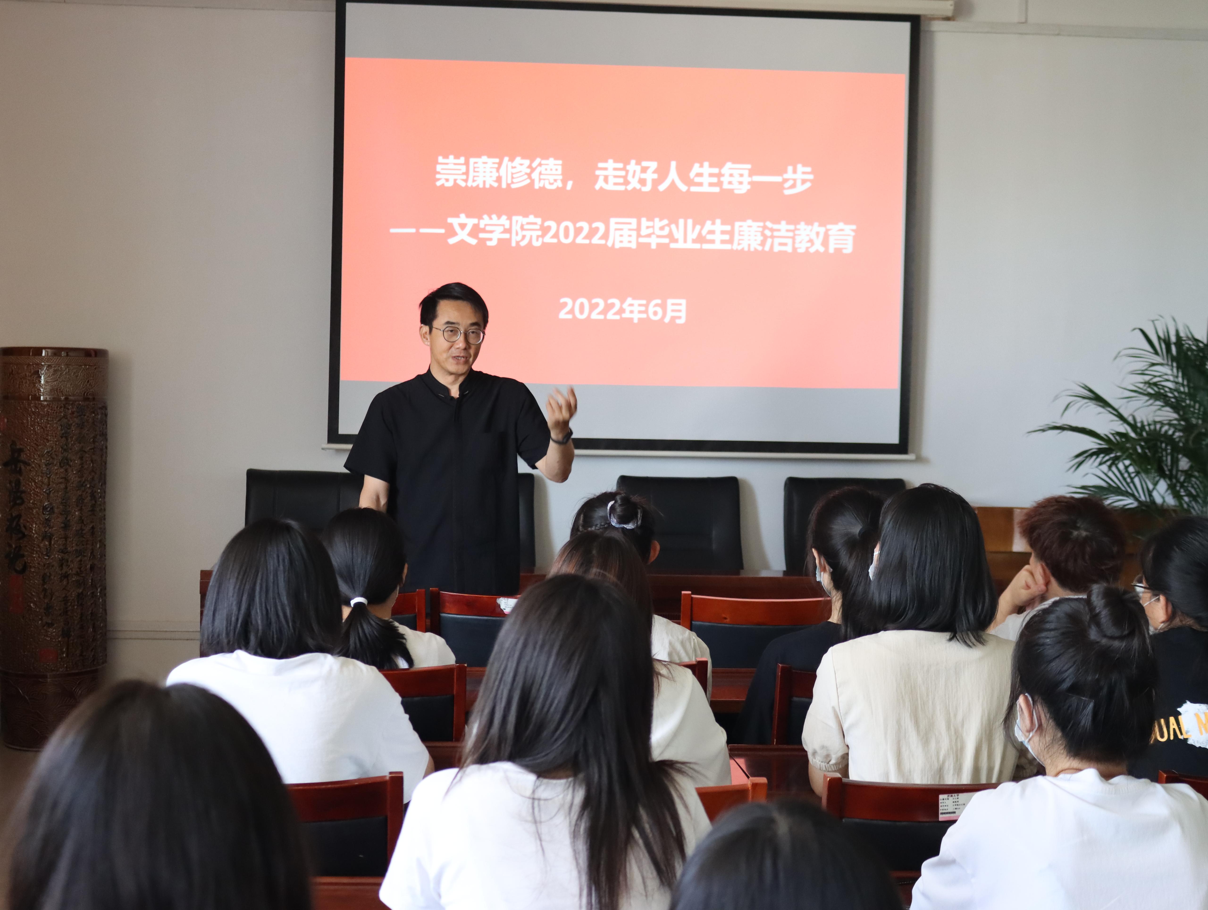 三教418会议室,对2022届毕业生开展以“崇廉修德,走好人生每一步”为主题的廉洁教育活动。学院党委书记陈卫东、党委副书记孙成政、辅导员敖游、毕业生党员和学生代表参加活动。