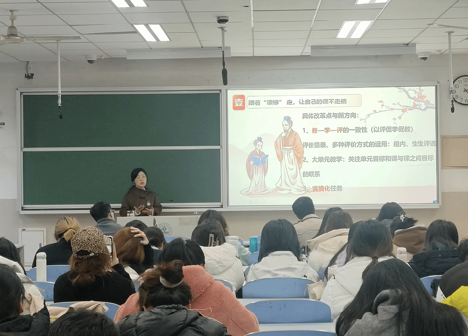11月21日下午,邀请济南实验初级中学特级教师陈万太在星硕举办了“语文路上 幸福逐梦”见习讲座。陈老师通过展示初中学生高分考试作文、朗读比赛获奖等教学成果,深入分析了如何通过落实课内教学任务来达到提高学生学习成绩、提升语文素养的目的。他强调年轻语文老师需要深入分析文本,充分备课,积极参加优质课比赛,才能得到快速成长。