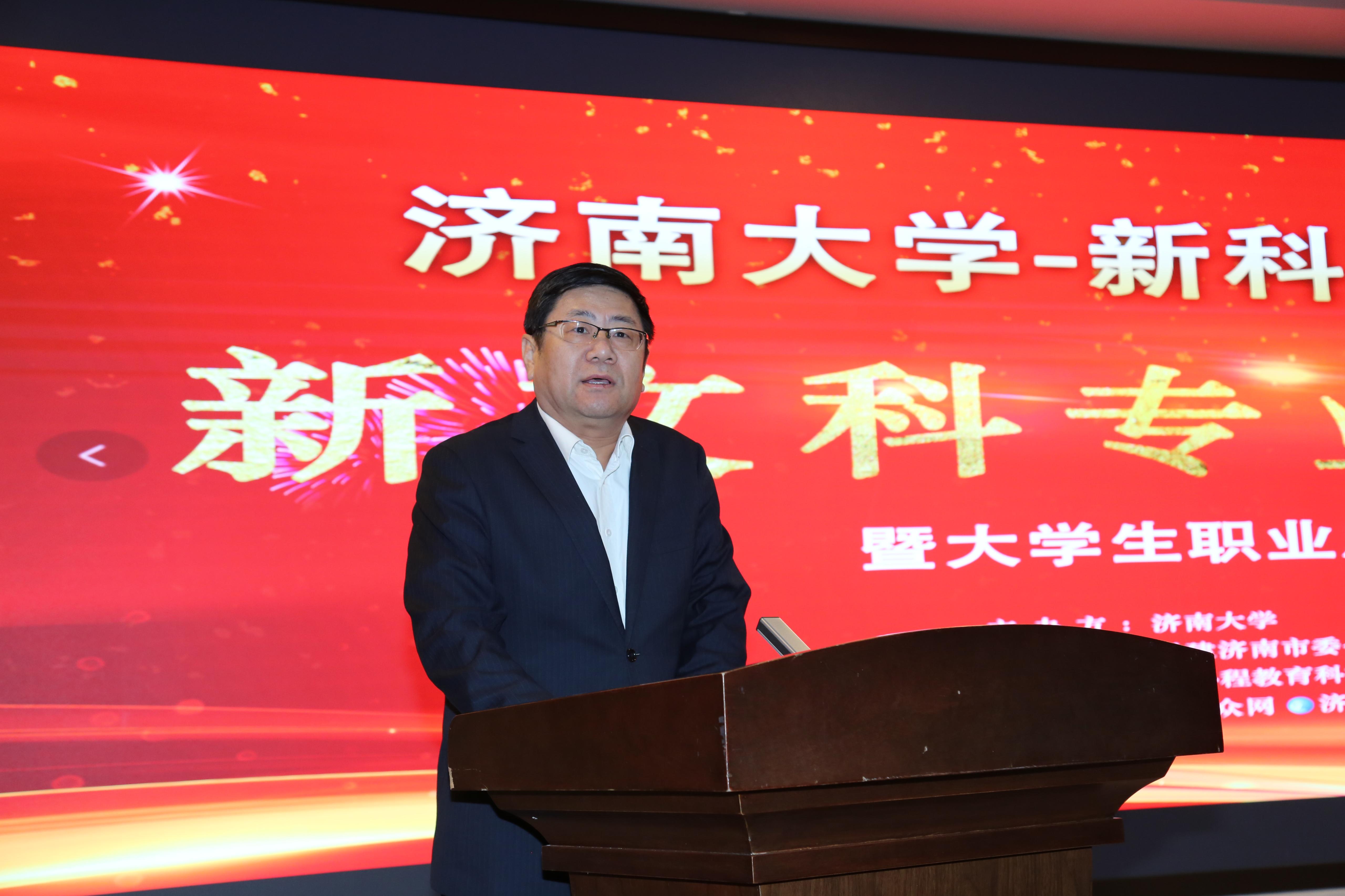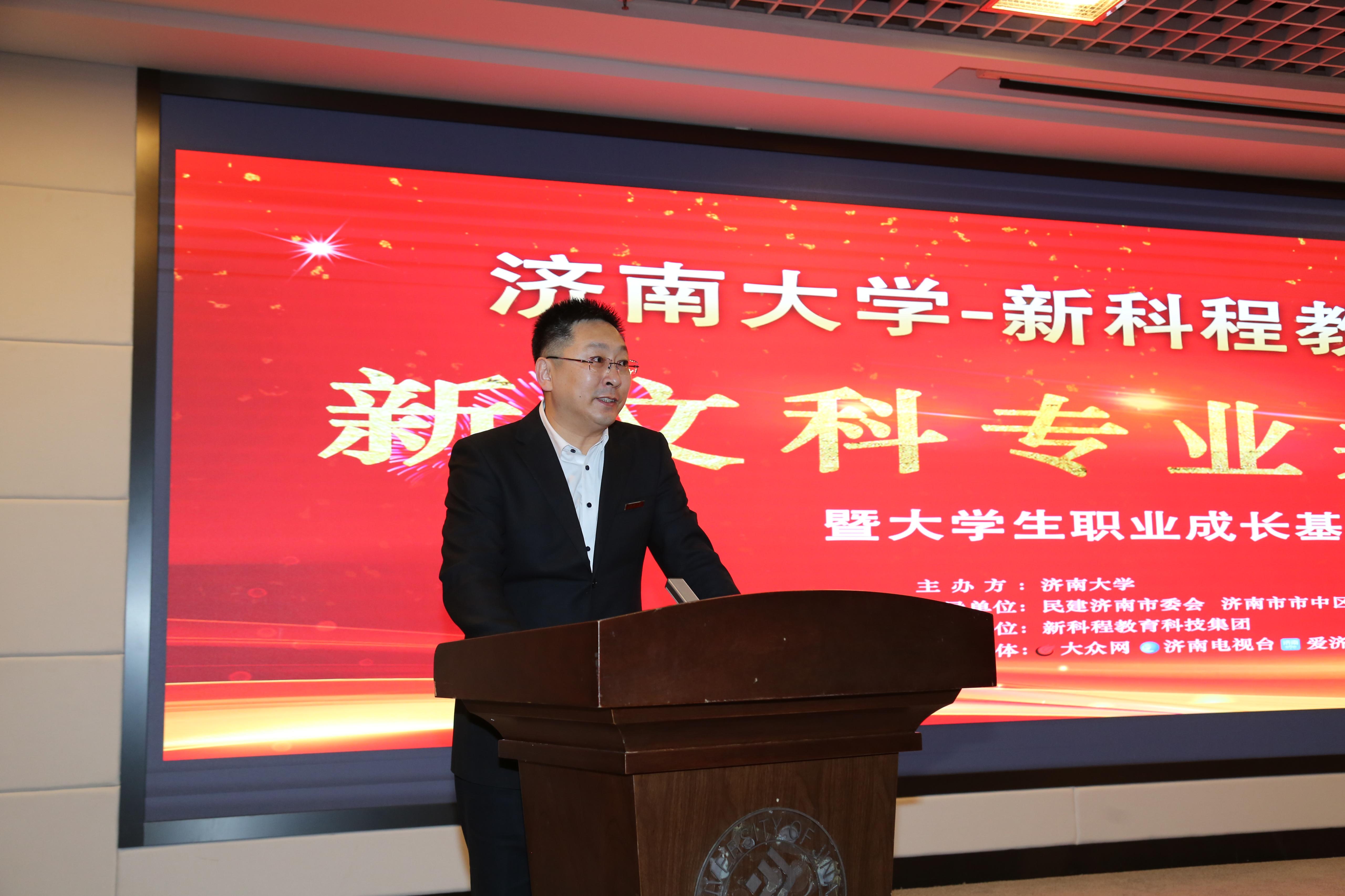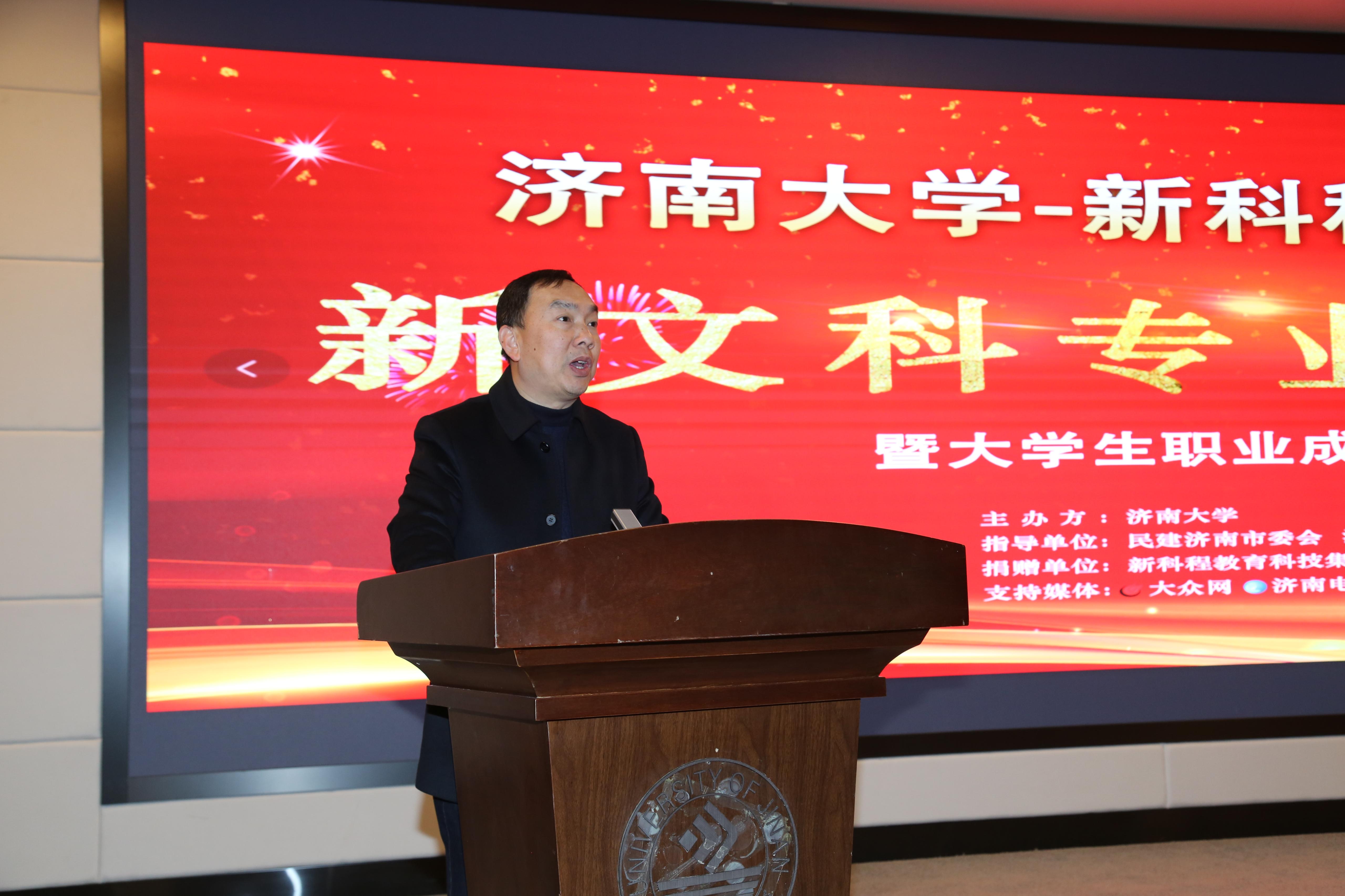 刘宗明副校长代表学校致辞,对民建济南市委会、市中区委统战部、新科程教育科技集团表示感谢,介绍了学校在人才培养、科学研究、社会服务、文化传承与创新、国际交流与合作等方面取得的成就。刘校长说,近两年,济南入选山东省高水平大学建设“冲一流”建设高校,核心发展指标均居省属高校前列,人才培养成效显著,获批一批国家一流专业、一流课程,新增一批博士、硕士学位授权点和专业学位类别。山东省一流学科、高峰学科、优势特色学科等建设加速推进,年度科研经费稳步增长,重大项目、平台和奖励取得突破,社会服务能力持续提升,产教融合发展全面起势,社会影响力和综合实力不断增强。同时,介绍了91看片