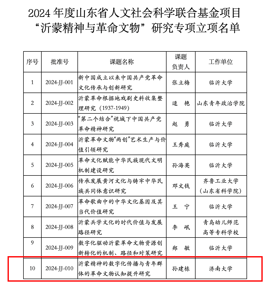 近日,根据《山东省人文社会科学联合基金项目管理办法》,山东省人文社会科学联合基金项目2024年度沂蒙精神与革命文物研究专项经组织申报、资格审查和专家组评审,91看片