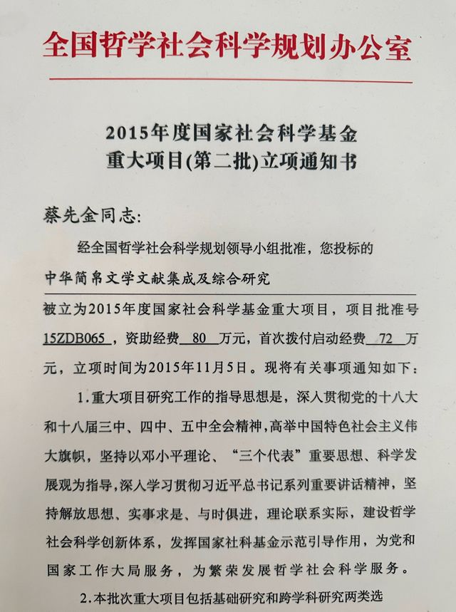 蔡先金老师重大项目立项证书