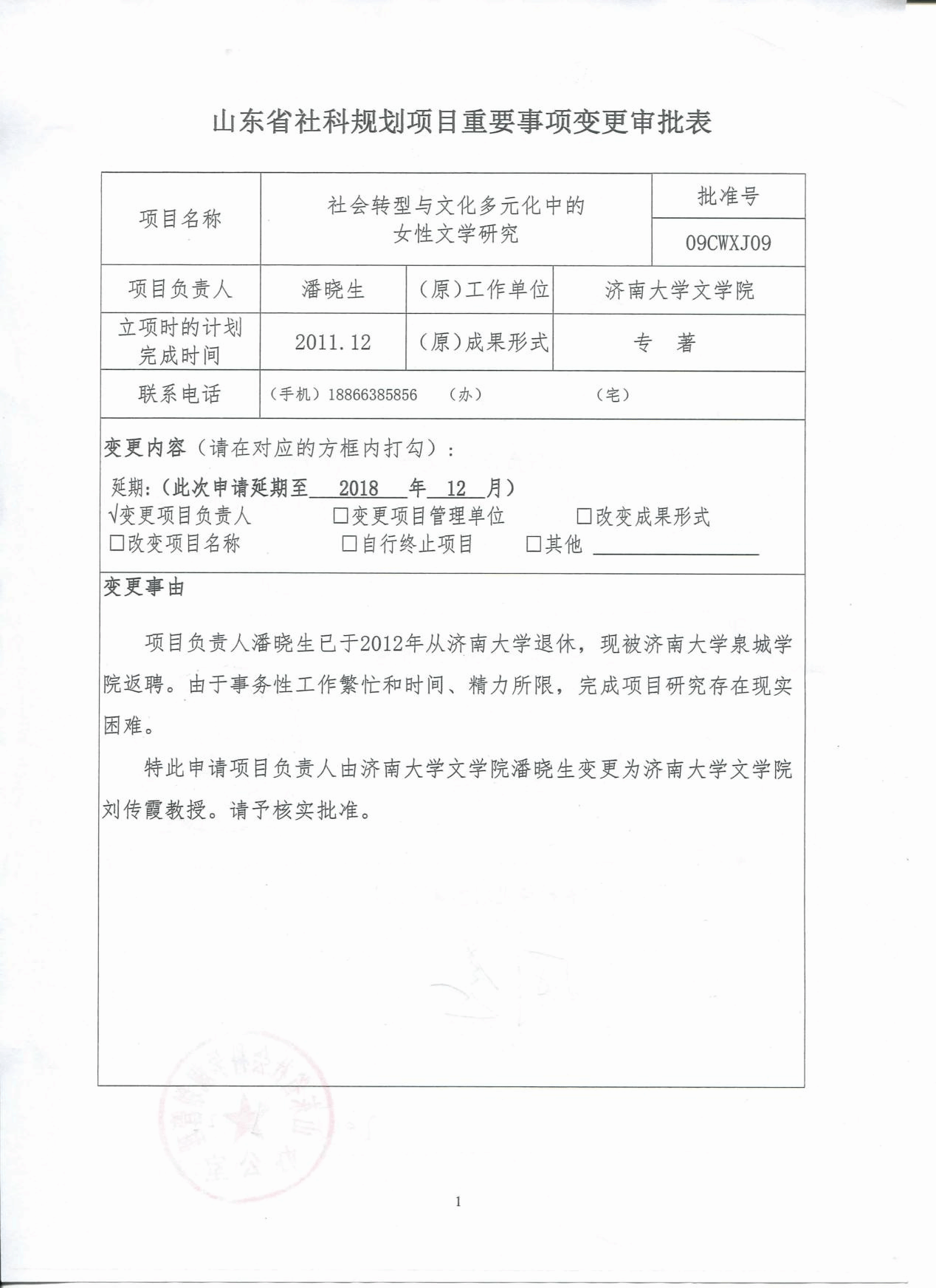 山东省社科项目《社会转型与文化多元化中的女性文学研究》简介