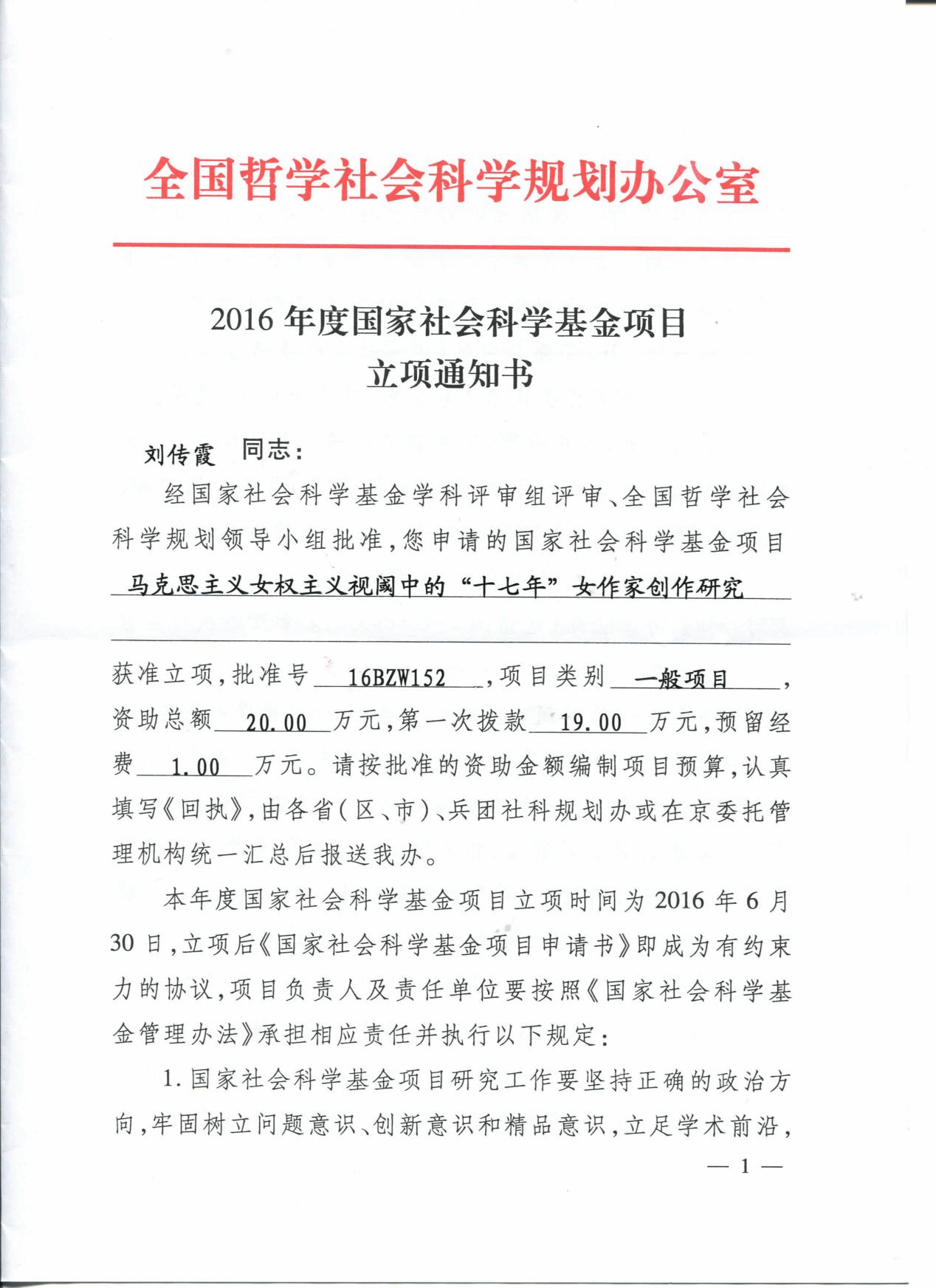 刘传霞教授主持的国社科项目“马克思主义女权主义视阈中的‘十七年’女作家创作研究”(项目编号为:16BZW152),本成果将“十七年”女作家创作与中国的社会主义妇女解放运动紧密结合起来,不论是对“十七年”时期女作家所描绘的新中国妇女生活图景的多方面探讨,还是女作家所创作的中国妇女新形象的深度分析,都将中国社会主义妇女解放运动的历史文化维度纳入其中,与封建时代以及现代中国新民主主义时期的妇女命运、妇女形象、性别观念进行比较,在与现实的横向联系与历史的纵向比较之中,对“十七年”女作家创作的贡献以及存在的问题作出评析。通过历史与现实的纵横比较,本成果认为,马克思主义以及马克思主义女权主义所提出有关妇女解放方法与路径适合中国的妇女解放历史,作为后发的现代性国家,中国妇女,尤其是底层妇女,参与民族、阶级以及公共活动是妇女获得解放、建立自我主体性的重要路径,中国共产党领导与推行的自上而下的妇女解放运动对妇女主体建构有着不可忽视的建构作用,妇女解放运动不能独立于其所置身政治经济、社会文化之外;而“十七年”女作家创作既是中国社会主义妇女解放运动的时代精神肖像,同时也是多重历史力量互动的产物,它催生了性别平等、社会公平等现代性别观、价值观的形成与传播,为现代中国女性文学提供了新的文学表现领域、文学形象和审美风格。