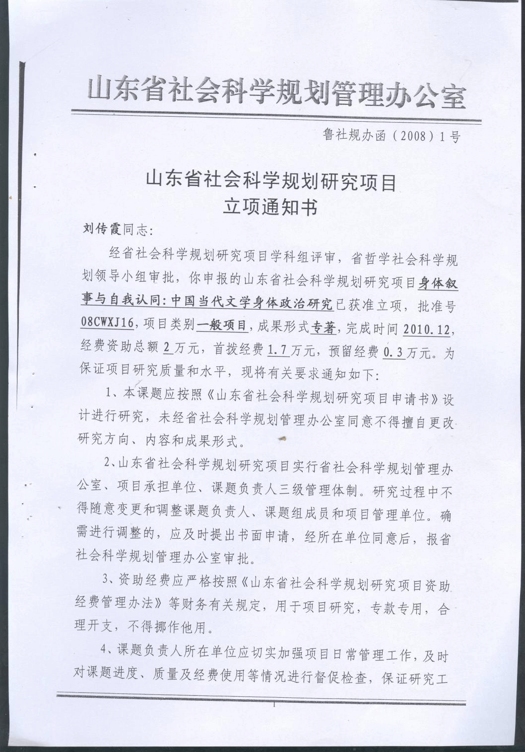 山东省社科项目《身体叙事与自我认同:中国当代文学身体政治研究》简介