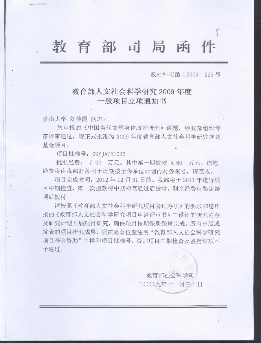 教育部人文社科项目《中国当代文学身体政治研究》简介